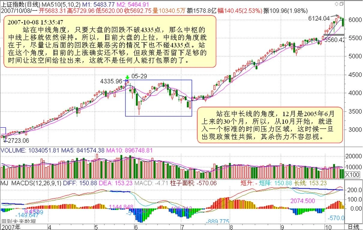 站在中长线的角度,12月是2005年6月上来的30个月,所以,从10月开始,就进入一个标准的时间压力区域,这时候一旦出现政策性共振,其杀伤力不容忽视。