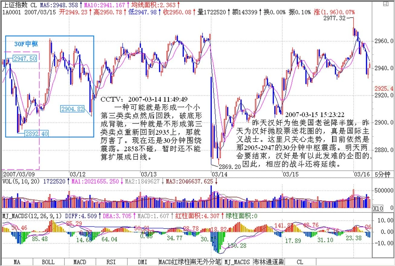 马上要走,简单说两句。昨天汉奸为他美国老爸降半旗,昨天为汉奸抛股票送花圈的,真是国际主义战士。这里只关心走势,目前依然是那2905-2947的30分钟中枢震荡。