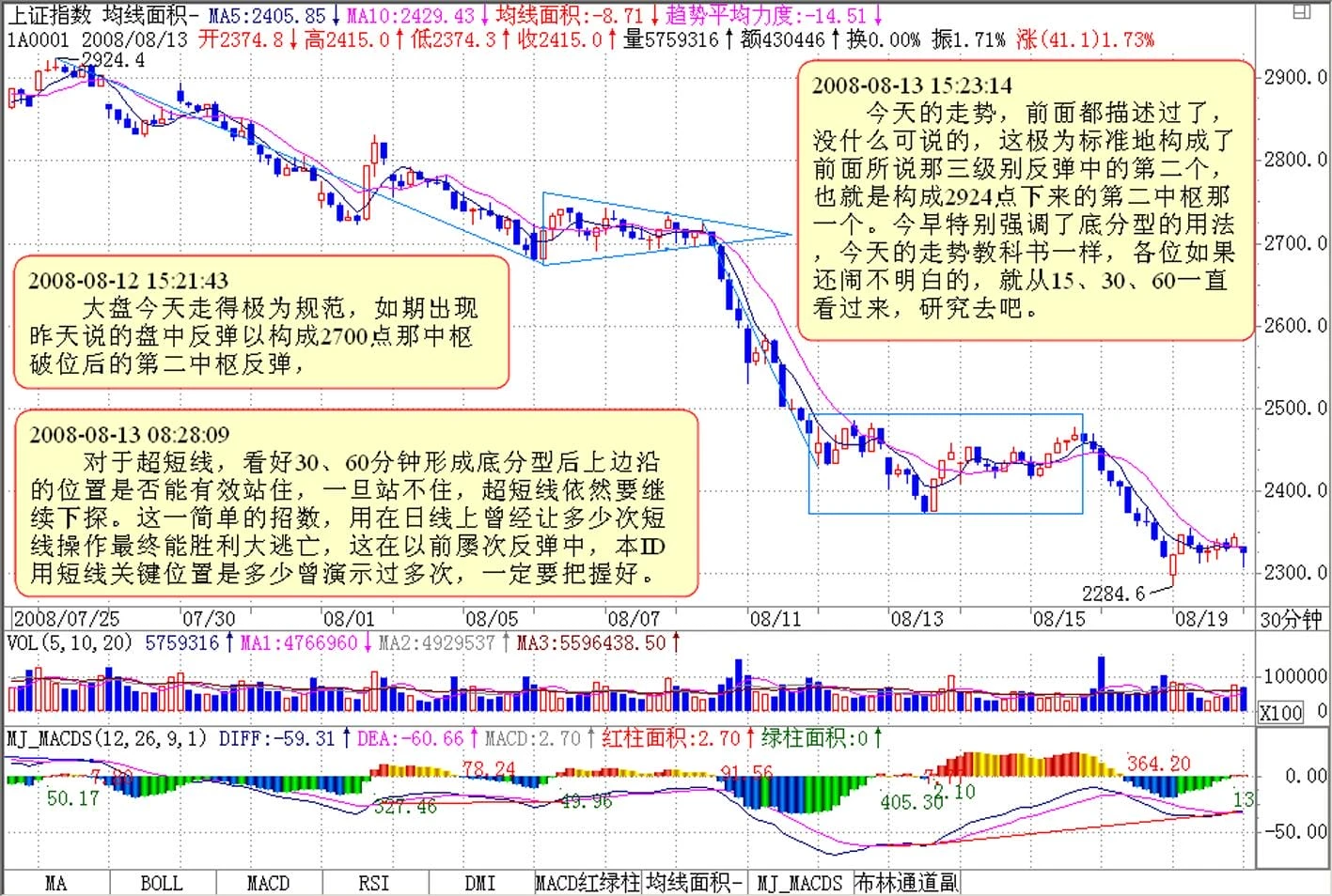 大盘今天走得极为规范,如期出现昨天说的盘中反弹以构成2700点那中枢破位后的第二中枢反弹,后面请注意了,这里严格说将有两种演化可能: