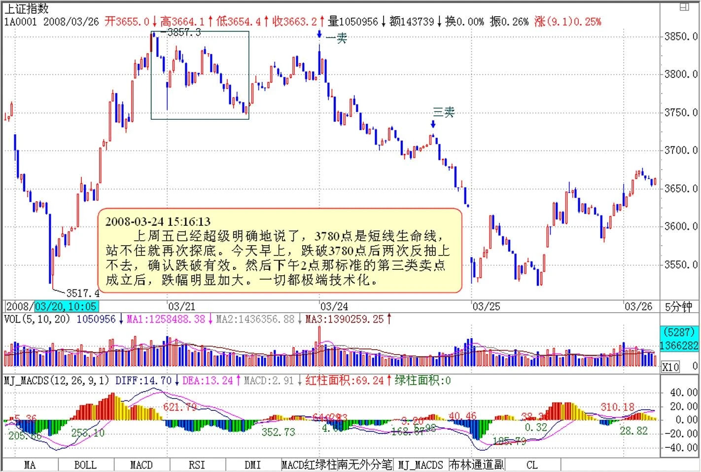 上周五已经超级明确地说了,3780点是短线生命线,站不住就再次探底。今天早上,跌破3780点后两次反抽上不去,确认跌破有效。然后下午2点那标准的第三类卖点成立后,跌幅明显加大。一切都极端技术化。