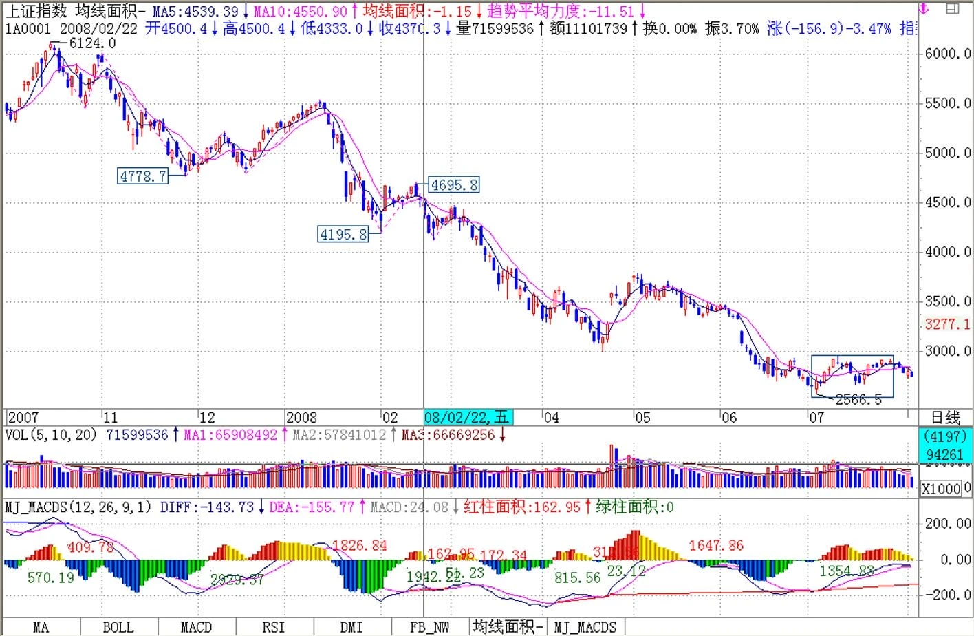 一、再次绿柱子后比前一次更长,面积更大,这对应着原来从6124点下来的30分钟级别下跌不能形成背驰,那么大盘最终的下跌空间完全可以合理地到达2500点,这也是我们所说以4300点为中轴的1800点震荡区间范围内的。