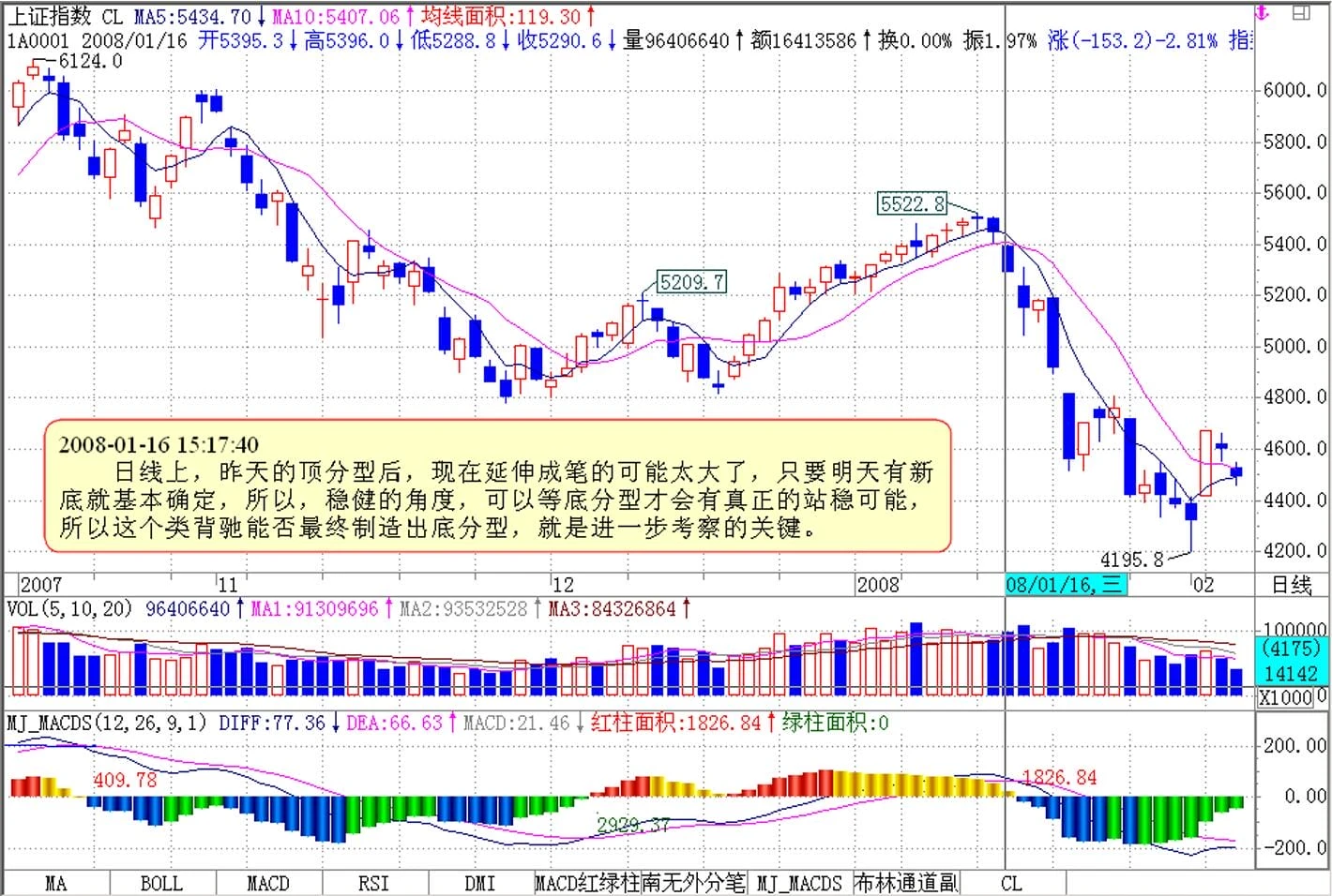 日线上,昨天的顶分型后,现在延伸成笔的可能太大了,只要明天有新底就基本确定,所以,稳健的角度,可以等底分型才会有真正的站稳可能,所以这个类背驰能否最终制造出底分型,就是进一步考察的关键。