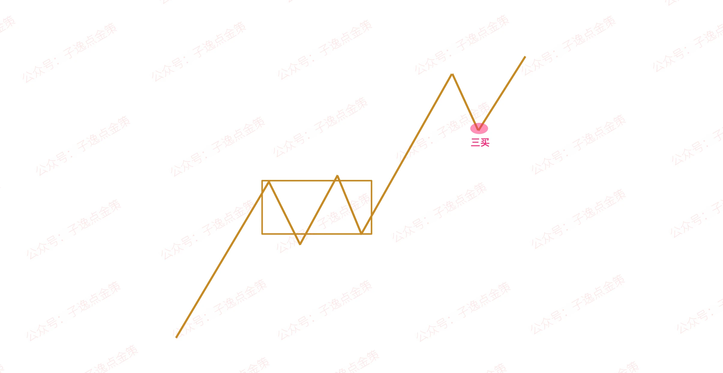 第三类买点:向上离开一个中枢后,第一次回调的那个低点,且该低点没有重新进入中枢的范围。