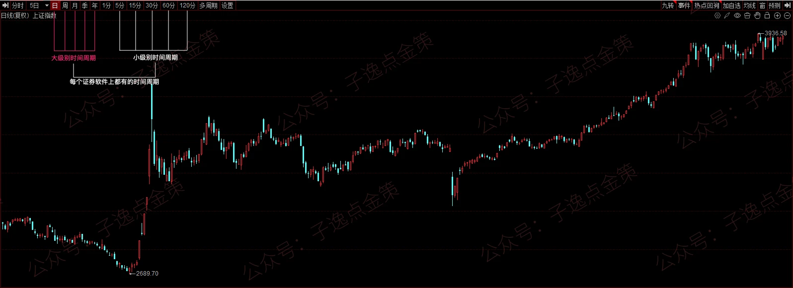 对于初学者,我们可以把“级别”简单粗暴地理解为 —— 你在交易软件上选择的那个“时间周期”。