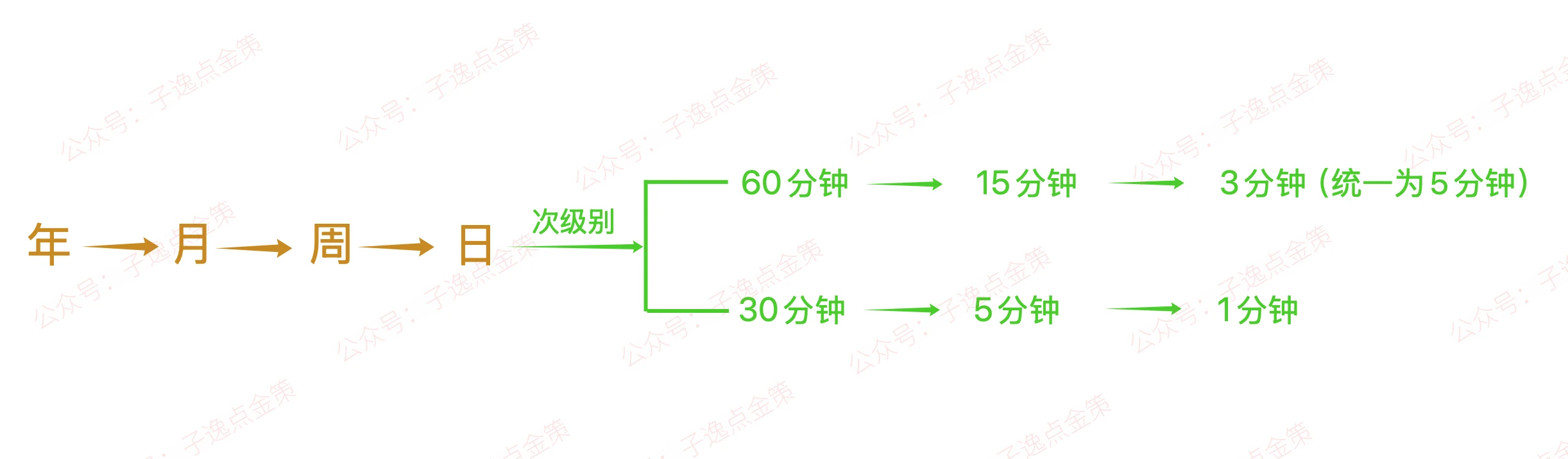 1分钟 → 5分钟 → 30分钟 → 日线 → 周线 → 月线